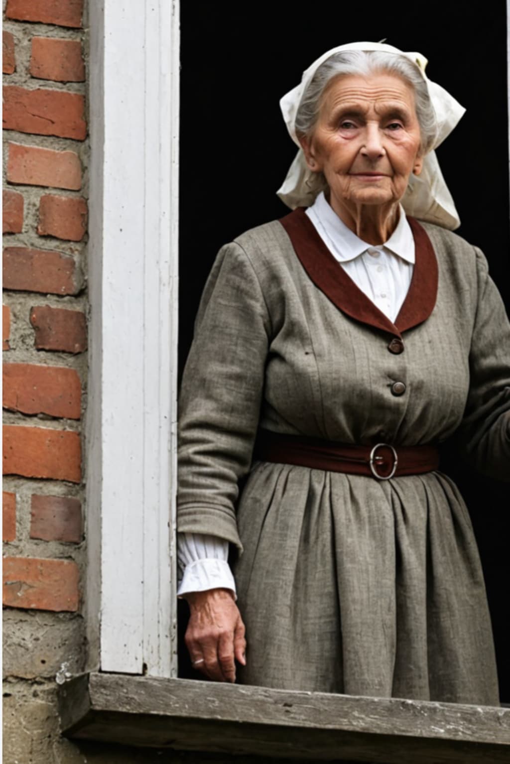 the woman framed in window glass