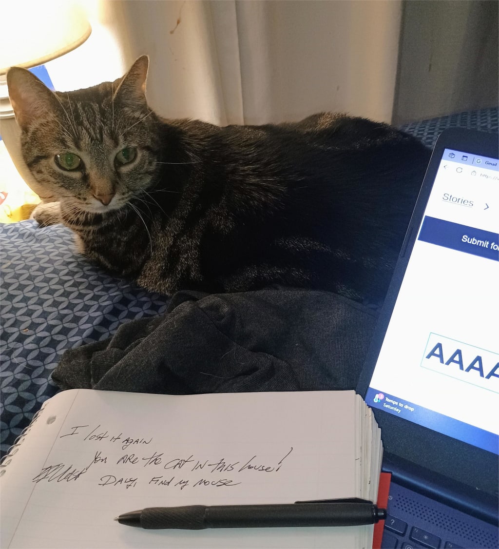 Daisy: Why me? 🤣 Lovely haiku. Lovely cat. I also started to write on paper before typing. Especially for poetry, it feels much better. And better in case of a haiku or acrostic, I think.