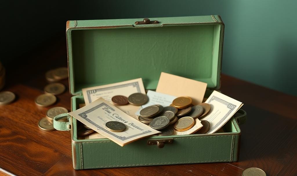 coins and polaroids