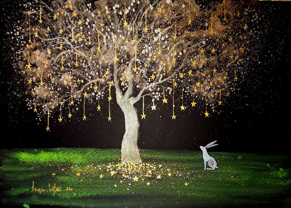 This poem is inspired by the beautiful painting by Angie Livingstone showing a rabbit under a Golden Tree of Stars.