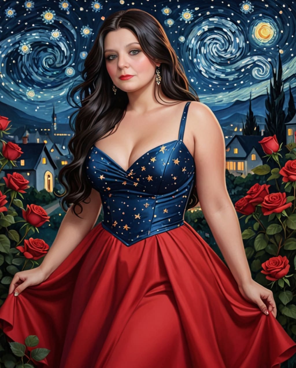 Her dress caught night’s reflection,
