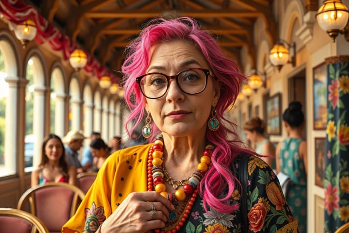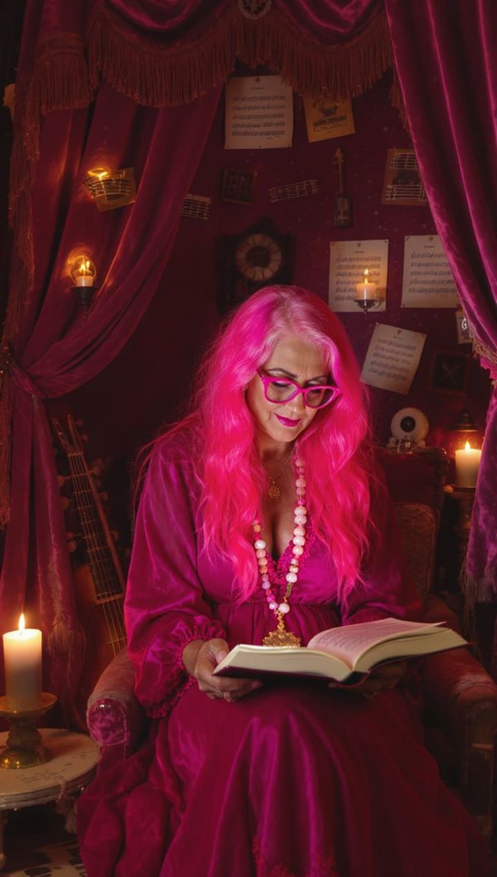 She archives grief in velvet, joy in fringe, memory in minor chords.