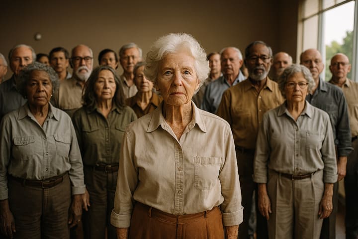 I woke from velvet dreams to the sound of groceries arriving tiny gluten-free lasagna in hand, archive humming. Today’s post is a ceremonial suite: elders standing in witness, a Bohemian at the corporate threshold, and a barefoot Composer walking the cracked score toward the tribunal’s shadow. Each image is verse. Each caption has a spell.
