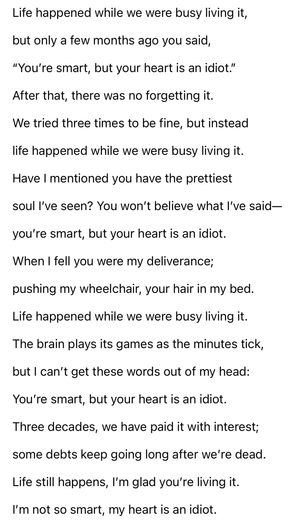 I’m not so smart. My heart is an idiot.