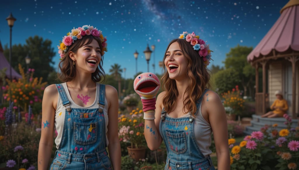 Austin’s eclectic vibe amplified their journey. At events like the Eeyore’s Birthday Party, where costumed weirdos gathered, Tessa and Riley fit right in. They joined a parade, Riley strumming her ukulele while Tessa twirled with a clay-dipped staff. The crowd’s cheers felt like a heartbeat, a communal pulse that embraced their oddity.This sense of belonging echoed queer culture’s chosen families. As a lesbian navigating a world of stereotypes, Tessa found safety in spaces where her quirks were celebrated. Riley, a non-binary artist, shared this freedom, their goofiness a rebellion against norms. Research from the Journal of Positive Psychology shows humor strengthens marginalized communities, offering resilience. Their antics—staging a “Puppet Court” to judge bad puns or wearing flower crowns to a dive bar—drew others in, creating a tribe of weirdos.