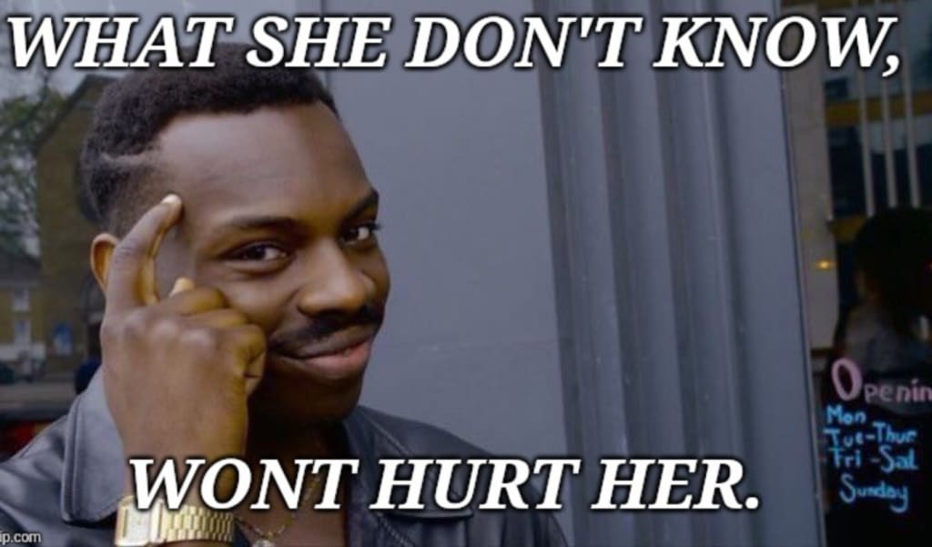 Sid (before me) has the perfect cliche response to the cliche "what she doesn't know won't hurt her".. is He Eve or is She Eve? hahahha. Maybe He doesn't know that She already knows.
