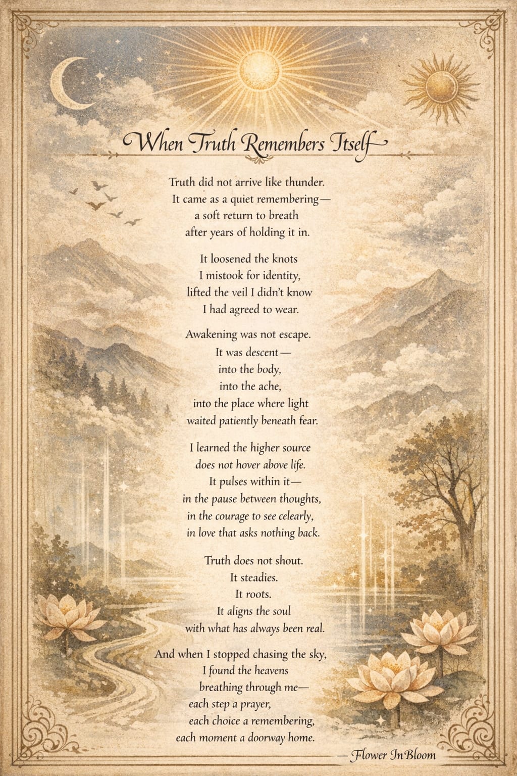 I write from lived truth, where healing meets awareness and spirituality stays grounded in real life. These words are an offering, not instruction — a mirror for those returning to themselves.