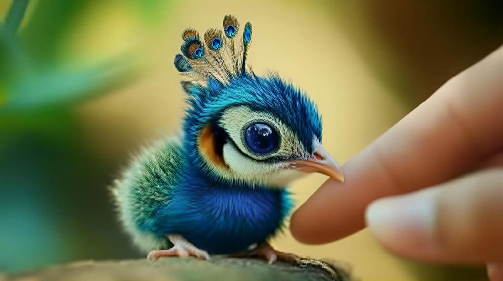 A gentle moment where a tiny peacock learns trust, and a human heart learns softness.