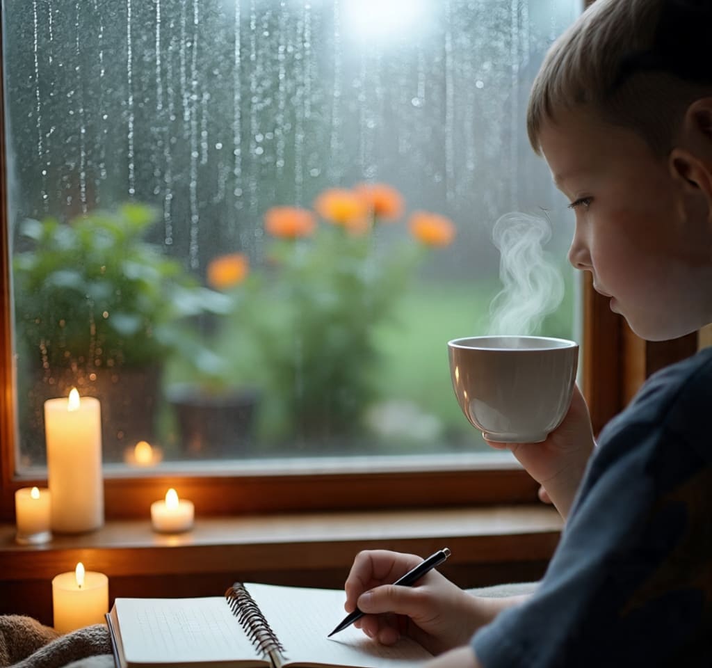 On a quiet afternoon, Maya sat by her favorite window, a worn notebook open on her lap and a pen poised in her hand. Outside, the sky was a soft gray, and the first drops of rain began to fall. There was a unique magic in this moment—the world slowing down, the steady rhythm of raindrops tapping against the glass, and the fresh, earthy scent that followed the rain’s arrival.