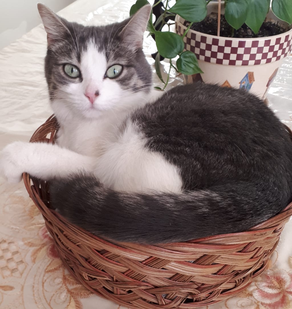 This is so good on multiple levels! A haiku with short & sweet words, from Abigail’s perspective—and funny! That’s a beautiful picture of her. 😻 I love how cats can’t resist sitting in round containers and shaping their bodies to them, LOL.