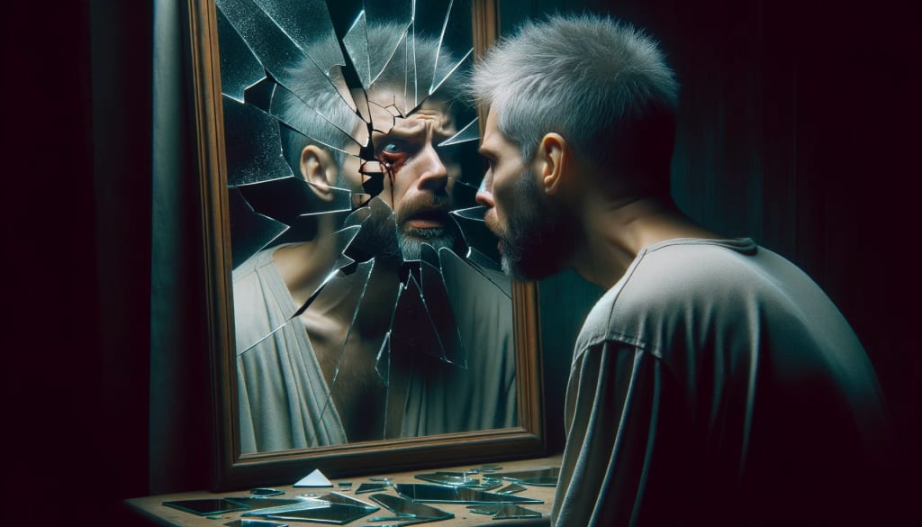 dismayed at mirror reflection