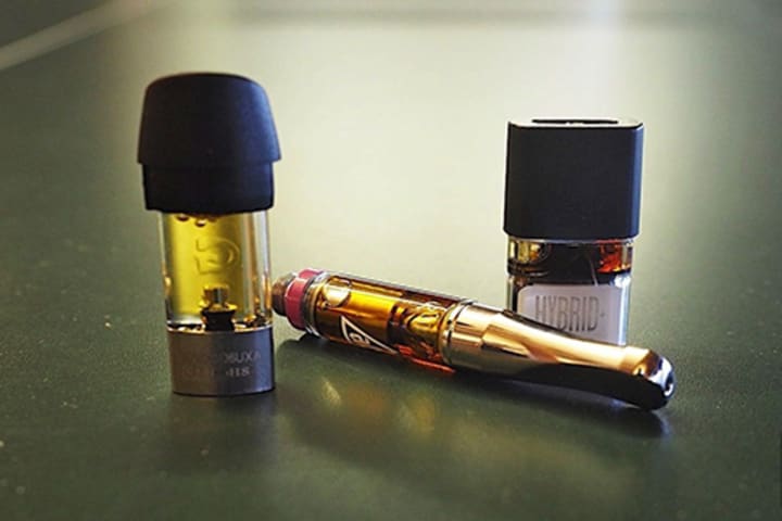 The cannabis oil that fills the vape cartridges is usually produced by a process called distillation, which strips the marijuana molecules to just cannabinoids.
