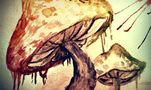 The magicians surrounds himself with various objects believed to have connections with the entities to be invoked - the magical link of correspondences. The Veracity of these connections is neither her northere - the magician's belief is all that's needed. In his essay on Kabbalistic taxonomy, 777, Crowley used the principle of magical correspondences to classify various drugs in terms of the Tree of Life e.g. Mace and nutmeg - the second tarot trump (The Magus) - Mercury Peyote – Sefira Hod – also Mercury. The first correspondence is quite impressive given the relatively recent discoveries of the pharmacological links between mace and nutmeg and the second fits in with the ritual use of peyote in South America, because Mescalito was the guide and teacher bringing the word as symbolised by Mercury. In 1912, Crowley produced a visual representation of initiation, in the foreground of which are red and gold varieties of amanita muscaria.