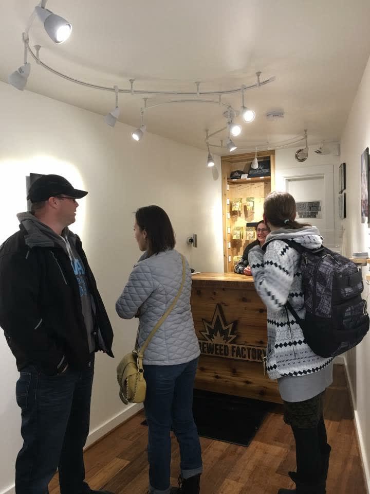 After lunch we walked the three blocks up the street towards Rainforest Farms, Juneau’s first cannabis retail store. We found ourselves distracted by the Zootz smoke shop along the way. The unique glass pieces and excellent customer service led me to buy a small white spoon pipe to enjoy the flower I would no doubt be purchasing at Rainforest Farms next.