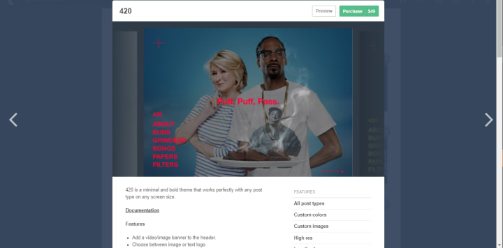 Tip: Spending money will get you a nicer template than the free generic ones Tumblr offers. You can usually find a great template for $5. I highly recommend the STASH 420 template.
