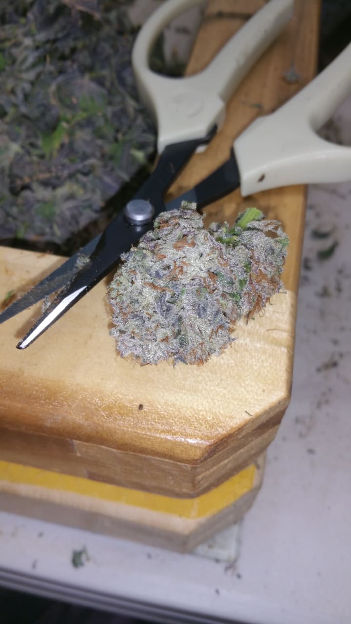Now tricomes may be a culprit and major producer of tears in the garden, but I have learned that they come in handy with helping with the other hazard on the job, scissor nips… ouch! I suffer from these way more than my honey, and yeah I could wear gloves and I could get one of those machines, but no; I prefer a hands on approach with my cannabis because I can’t transfer love and healing vibes through latex… and besides, I wash my damn hands and I am not in there all nasty… yuck… come on, seriously? It is my medicine, you know? I have learned if it is just a small nip, that the sticky of the icky helps seal and heal the wound and you are left to carry on. Now, if you seriously cut yourself, don’t expect the tricomes to work miracles, go get a first aid. No one wants anyone bleeding all over their weed, and for certain they don’t want chunks in it either, so be careful. If you find yourself getting tired, take a break, because I know that when I have had a long day of trimming is when I begin to take my tips off.