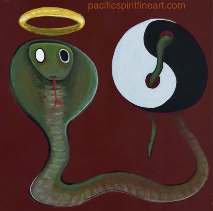 The Crowned Serpent: balanced, anointed, shadow and light entwined. Safe, aligned, and shed of the old skin – the divine masculine awakened.