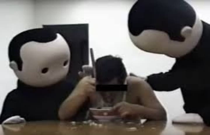 This creepy video shows a man eating soup while comforted by two gigantic mascot characters. The origin of the video is unknown, but the creepy and foreboding atmosphere it creates has been subject to a hundred and one theories, ranging from the classic abduction to psychic torture.