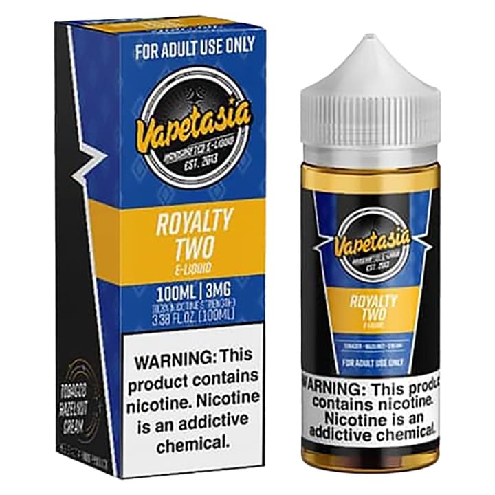 is an exceptional flavor and favored above all others in our lineup. With each dignified inhale you’ll find complex and unique notes of custard, hazelnuts, and vanilla melding together with a mild tobacco flavor, that is sure to please the most discerning of palates.,This magnificent blend is ideal. Flavors ROYALTY TWO or KILLER CUSTARD or KILLER CUSTARD STRAWBERRY.Nicotine Level (MG) 3 MG or 6 MG or 24MG or 48MG.