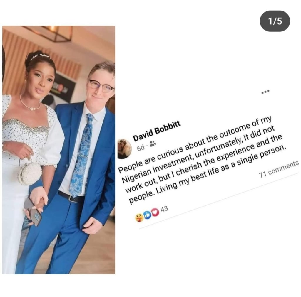 In a surprising turn of events, the marriage between Anwulika Udanoh and her Canadian husband, David Bobbitt, has hit the rocks just two months after their wedding photos were celebrated on Facebook.