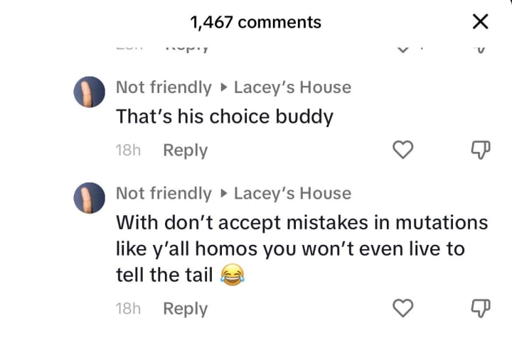 TikTok is a perfect place to post hate speech against homosexuals, they threatened remove or violate those who post hate and violent content towards the LGTBQ population. It's not a safe space for children at all.