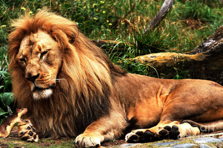 The mouse and the the lion came looked eye to eye. All other animals were worried about the rat because the know that he was scared for everything. Oh nooo! the lion will swallow the matched 'animals said'. What nerve? What courage? What are You doing on my back? The lion asked.