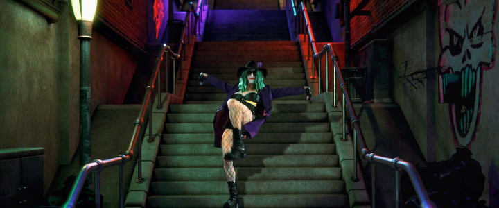 Trying to describe the plot of The People's Joker is a rather futile effort, not that the movie is plotless, it's just deciding where to start that's the problem. In this dystopian future, Vera (Vera Drew) is from Smallville but dreams of going to Gotham City where a show called UCB Live is the biggest show in the world and Lorne Michaels rules comedy with an iron fist. It's also where a retired Batman still dominates the headlines despite no longer being the caped crusader. On UCB Live, Vera is assigned the identity of a Male Joker. In the harsh world of UCB Live, you are either a Male Joker with a distinct identity and able to perform on the show or a female Harlequin and designated as only a background dancer.