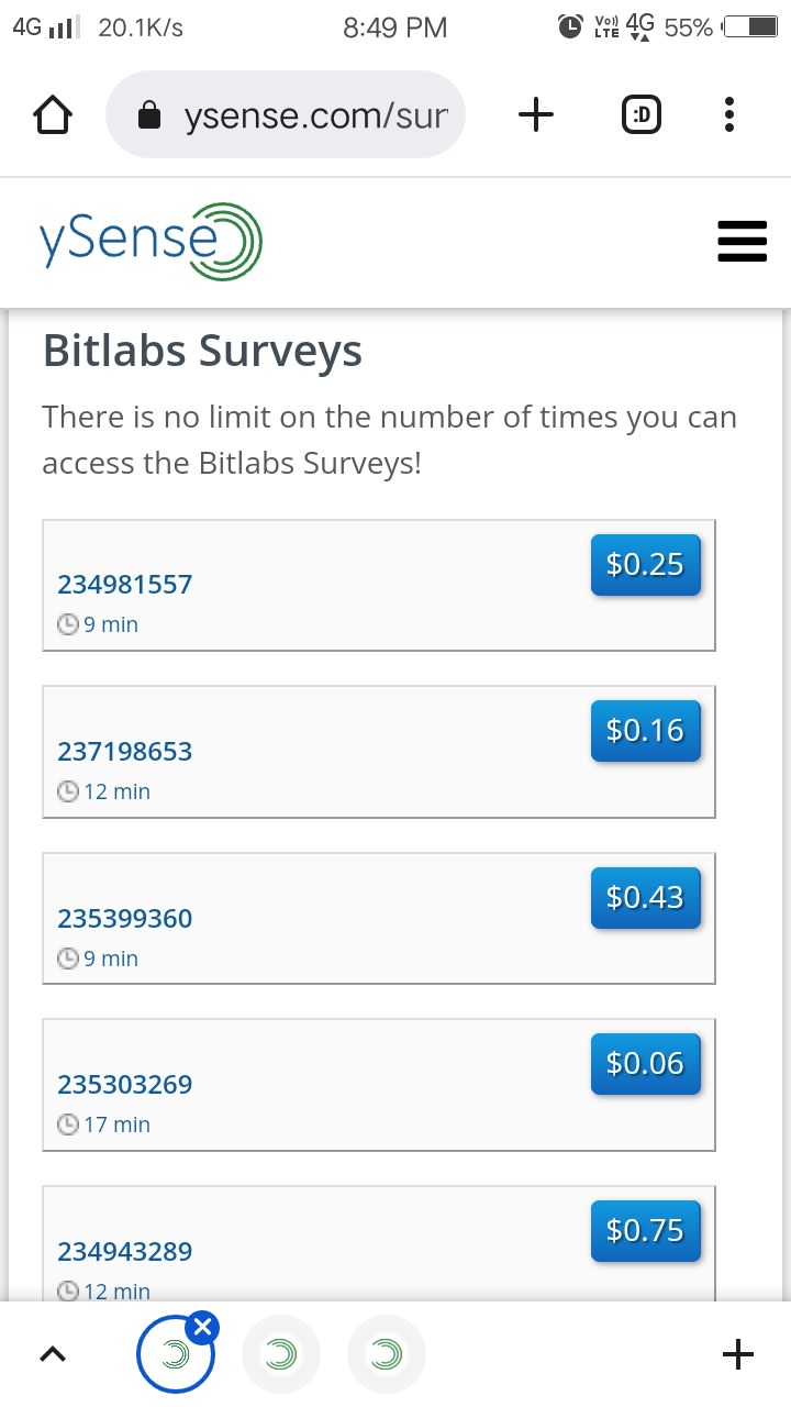 Also, be aware that in addition to the surveys you can see, there is also a section right below the surveys where you can see the survey routers ySense has a cooperation with.