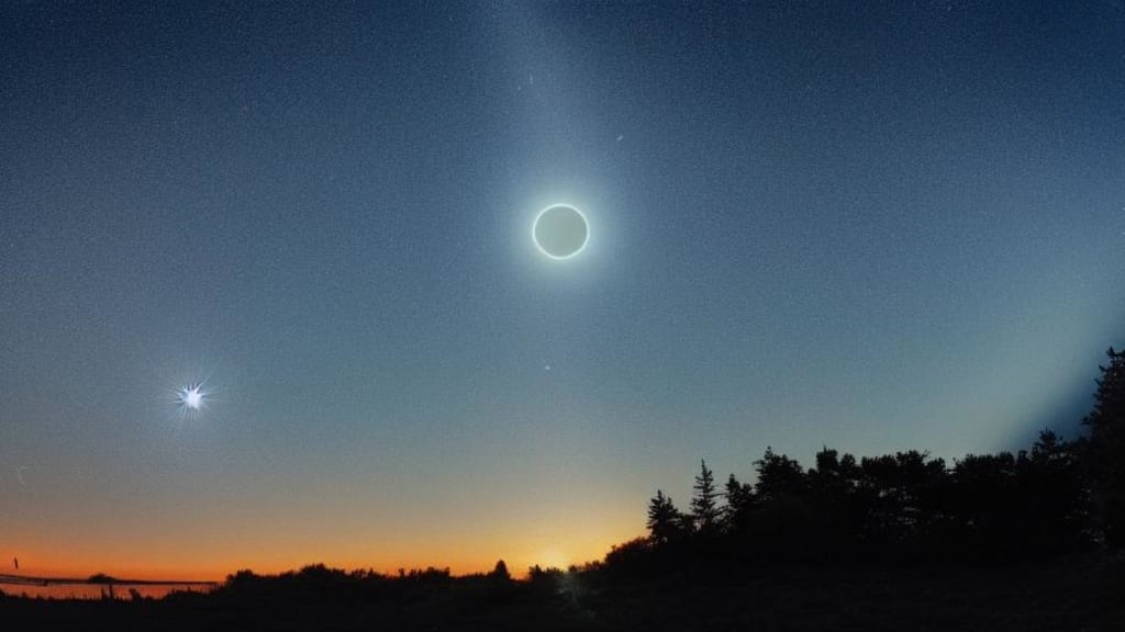 The sun gradually disappears behind the horizon, and the sky turns from orange to pink and purple. And then, like magic, you can see the new moon appearing right beside where the sun was once shining.
