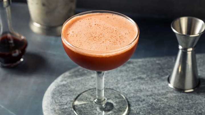 Shot glasses of Angostura Bitters are also the main ingredient in the Trinidad Sour, an iconic drink made with Angostura Bitters, orgeat, lemon juice and rye whisky that was created in 2009 for a bartending competition by Brooklyn's Clover Club bartender Giuseppe Gonzalez.