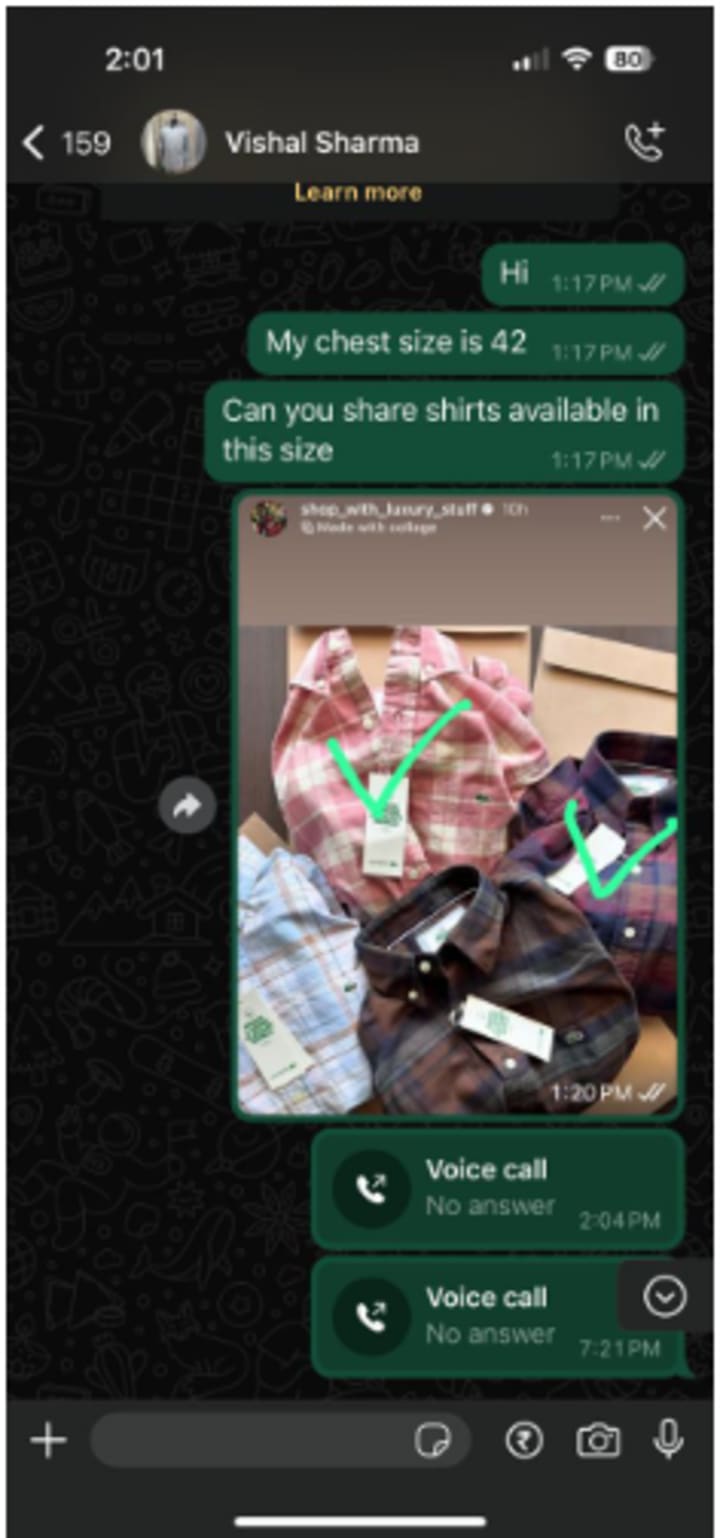 I placed an order for 4 shirts (2 Lacoste and 2 H&M) at a total cost of ₹2950, which I transferred via GPay. I'll include screenshots of the payment and chats in this blog for reference.