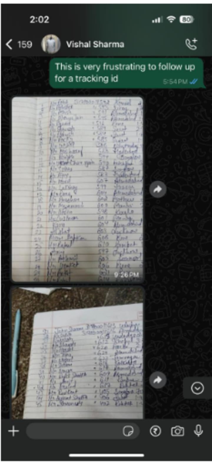After placing the order, I repeatedly asked for a tracking ID. Eventually, Vishal provided one from Anjani Courier, but when I checked it, the tracking ID turned out to be invalid. Screenshots of this discrepancy will be shared below.