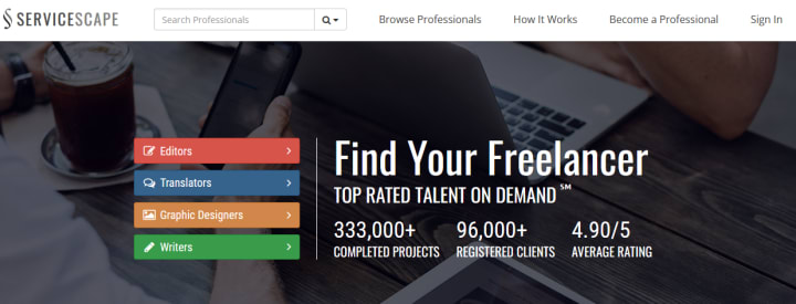 ServiceScape is an online job board specializing in freelance writing, editorial, and translation work. The platform helps freelancers build profiles and promote them to a growing client database.