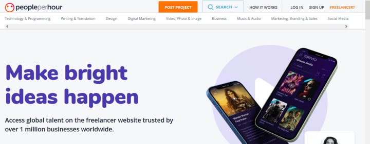 As the name suggests, People Per Hour helps businesses find professional freelancers to hire by the hour or project. There are millions of freelancers from different industries, such as public relations, marketing, and journalism.