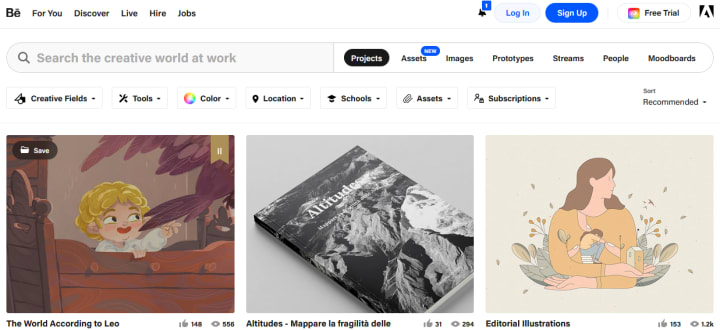 Whether you are a freelance graphic designer, web designer, or animator, Behance provides a place to get discovered by potential employers. Start by signing up for an account and establishing your profile.