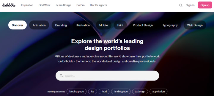 Dribbble is one of the most popular platforms for creative talents to meet, connect, and interact with each other. Designers and artists use this website to build portfolios and promote their brands.