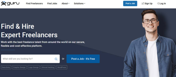 Guru is a place for freelancers and companies across the globe to work together. Companies can hire professionals with various skills, such as programmers, graphic designers, and product managers.