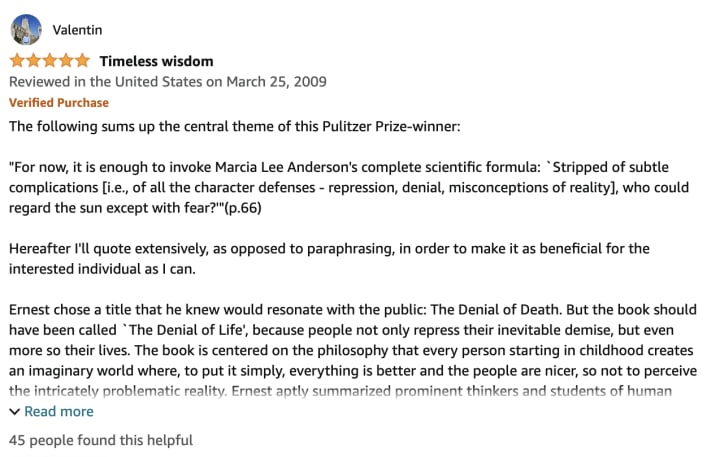 1. "The Denial of Death" by Ernest Becker: