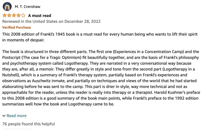 4. "Man's Search for Meaning" by Viktor Frankl: