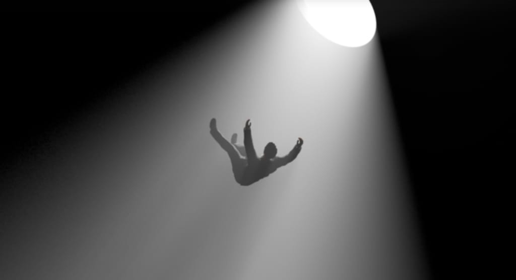 Not the vinyl—the space. The air beneath him tore open like fabric. Something dark and vast yawned where the floor had been.