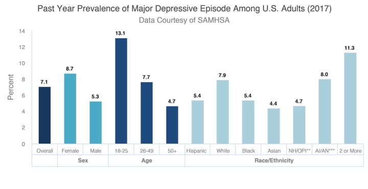 If we assume this line continues at the rate is it, it's estimated that 1 in 2 people will have experienced depression by the age of 60. that's half of the population.