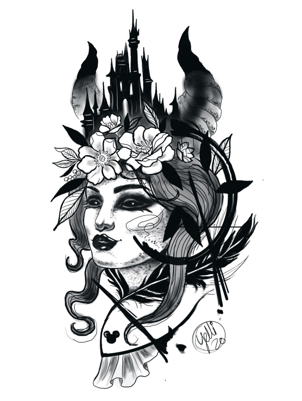 My tattoo choice is that of a self-drawn depiction of the Disney classic villain Maleficent. A woman scorned. A no-doubt physically beautiful creature of the fairy world. Queen of all things nature, protector of all things untouched by man. But ugly. Misunderstood. And unwanted in the presence of humankind.