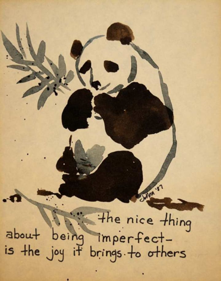 She is a watercolor artist and one time she gave me an 8x10 photo that she had made for me that had a cow picture and the words, "Do Not Should On Yourself!" Another time a hand-painted watercolor with "The nice thing about being imperfect is the joy it brings to others!"