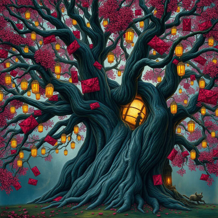 Follow the map to the magical tree of letters, it will know your heart's desire and offer you the perfect balm for your state of mind. Sit at it's roots and bare your souls. It will listen and not judge, it will embrace you, unconditionally, offering you just the correct dose of what you seek.