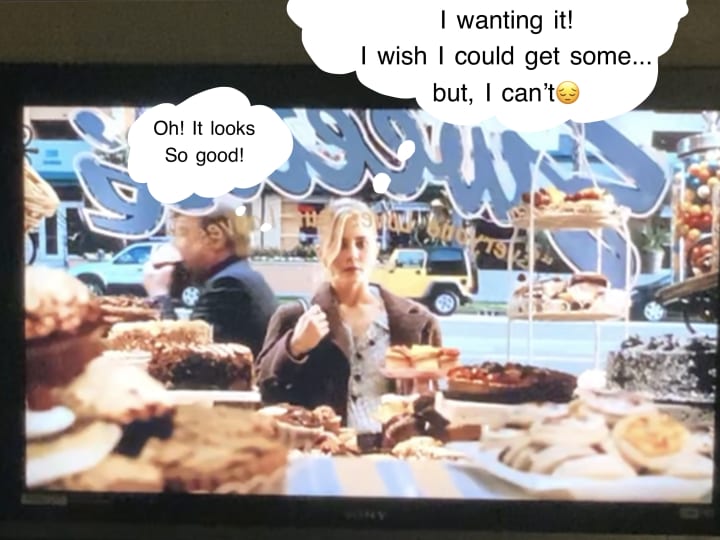By the time she's heading to her work, she hungrily and lustily stares at the delightful baking goods from the window. You can tell of her thoughts and reaction like, ‘Oh my gosh! Wow! I wanted it! I wanted so badly. They look delicious. But..no..... I can't.” I wonder if she already ate the grapefruit for breakfast(according to the rough script as ‘Stephanie’). This is the first sign that she has been through with an eating disorder. She might be ended up for doing major fasting. For me, I have to keep a low-carb diet and keto-friendly as I can. I still have to go easy with all the carbs while I'm still aware of the calories, sugar, and sodium. About the fast foods, carnival foods, and anything that has too much deep-fried/salty/greasy, I have to stay away from them as much I could.