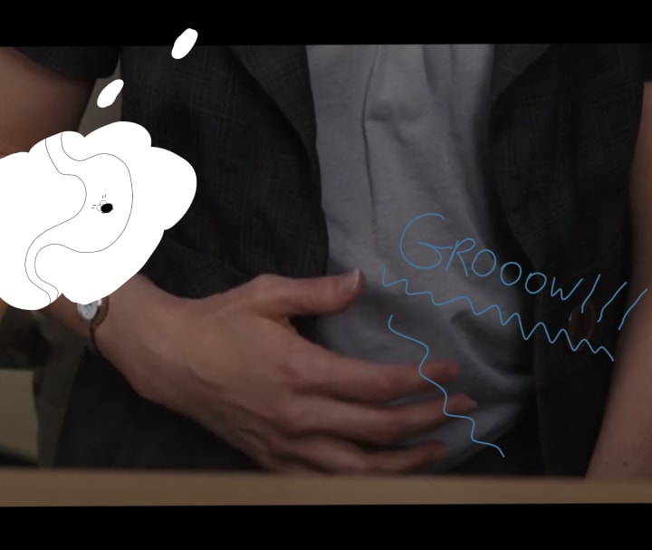 During dinner, the hallucinations and disturbances came back. Christine's food, including the cake, turned disgusting with dirt, maggots, and eyeballs (yuck) while others enjoy eating because of the issue of her eating disorder. This body language is like,in reality, “I don't know if I should eat this.” Then, the conversations turned haywire like talking too fast or dont know what they’re talking about. I understand that it's quite common when someone is not eating. The same symptoms and traits from premenstrual disorders, anxiety, ADHD, depression, and autism. It happened to me too. It also makes sense about why Christine can't eat anything, if she does -she would vomit, choke, or gag(especially when the fly came out). After the louder intense noises, screaming, and throwing the glass on the wall, it turned horribly disaster. Christine walked away, she felt horridly embarrassed.