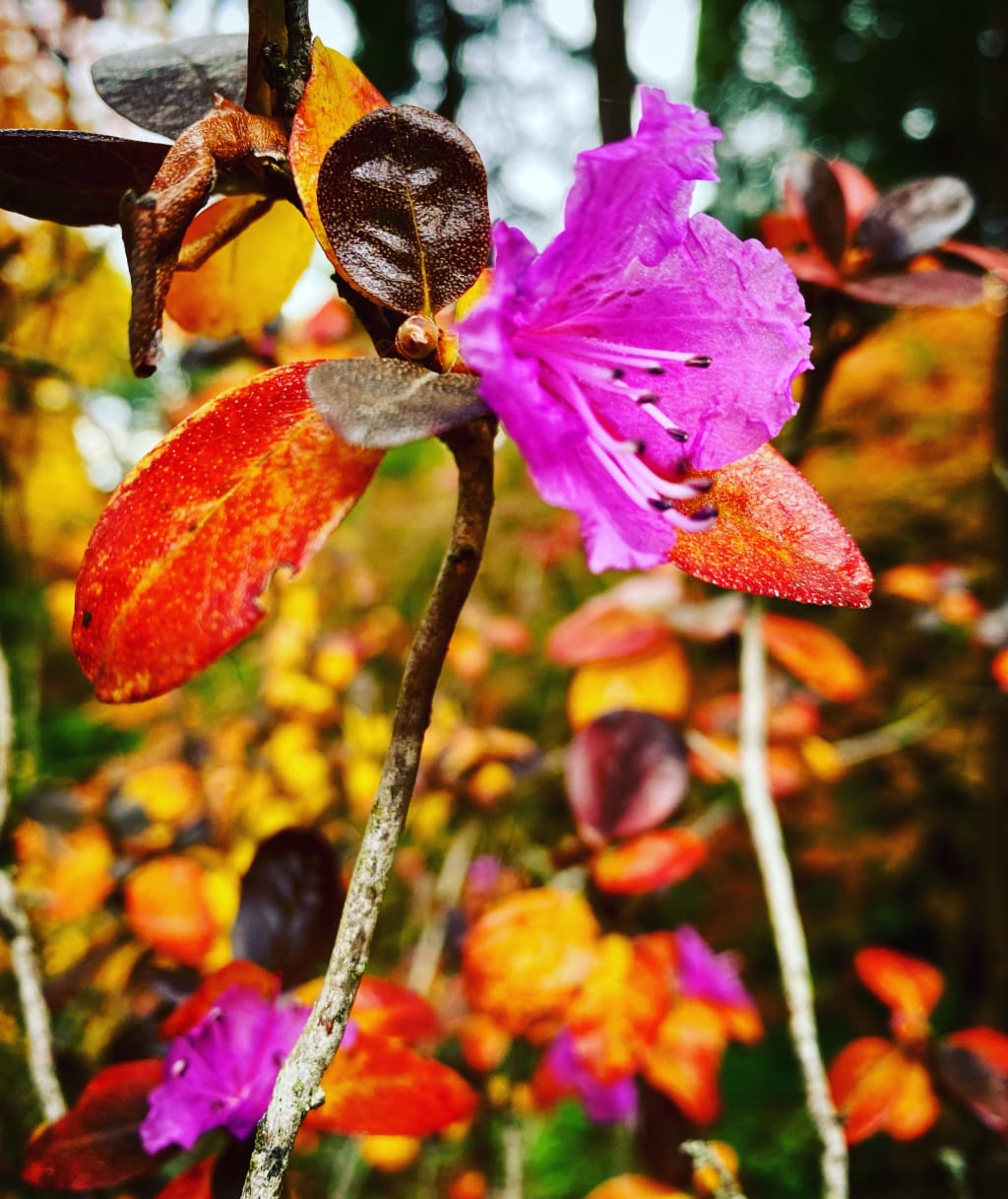 Zara had the heartbeat of her ancestors pulsing in her veins, driving her to find peace on the forest floor. Watching the puddles of paint gather under the rhododendrons in magnificent pallets, imagining that they are entries into another world. Zara played hide and seek with the mushrooms that rest under the ferns as the ochre leaves drift down as slow and gracefully as giant snowflakes. She spent her moments tracing the outlines of maroon and vermillion trees against the grey backdrop of moistened air.