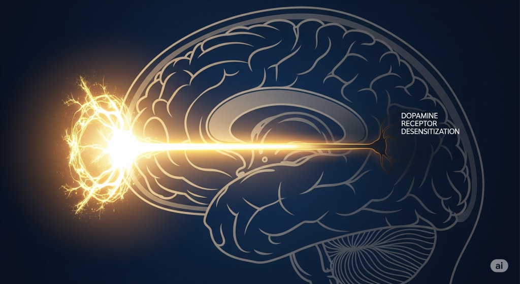 The brain is an adaptive organ and tries to protect itself from this constant overstimulation. It begins to down-regulate, or reduce, its number of dopamine receptors. This process, known as desensitization, means the user now needs more stimulation to feel the same level of pleasure. This is tolerance, a classic hallmark of addiction. Real-life intimacy with a partner, which provides a normal level of dopamine, begins to feel dull and uninteresting by comparison. This chemical tolerance drives the user to seek out more extreme, more novel, or even content they previously found disgusting, all in an effort to get the same "hit" they once did. One study found that nearly half of users had pursued content that they had previously considered uninteresting or repulsive.