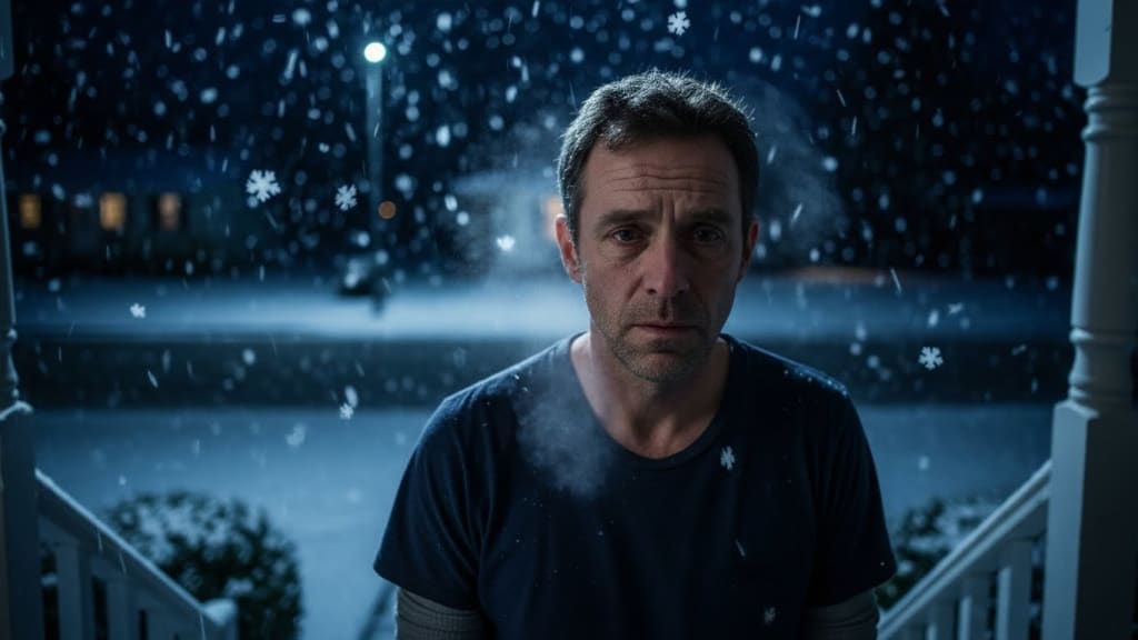 His gaze snagged on the oak tree across the street, its skeletal branches now catching the first dusting. And just like that, his mind went back to the argument. Her face. Not the shouting, no, they rarely shouted anymore. It was worse than shouting. It was the quiet disappointment, the way her eyes had narrowed, not in anger, but in a kind of tired, resigned sorrow that cut deeper than any yell ever could.