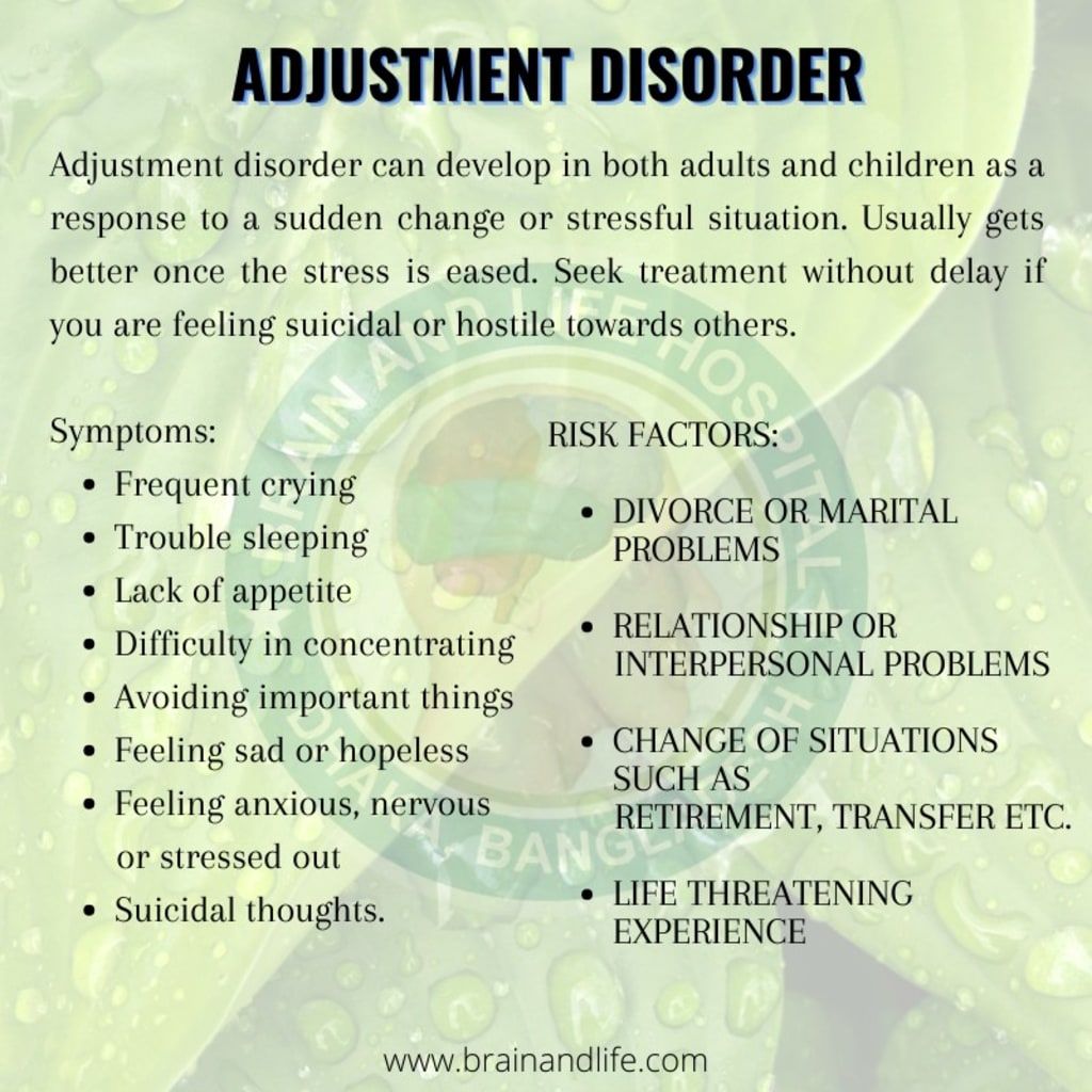 Adjustment disorder is a common mental health condition that occurs when a person has difficulty adjusting to a stressful life event or change, such as a job loss, divorce, or illness. People with adjustment disorder may experience a range of emotional and behavioral symptoms that can significantly impact their daily life and well-being. However, with the right treatment, most people with adjustment disorder can recover and return to their normal functioning.